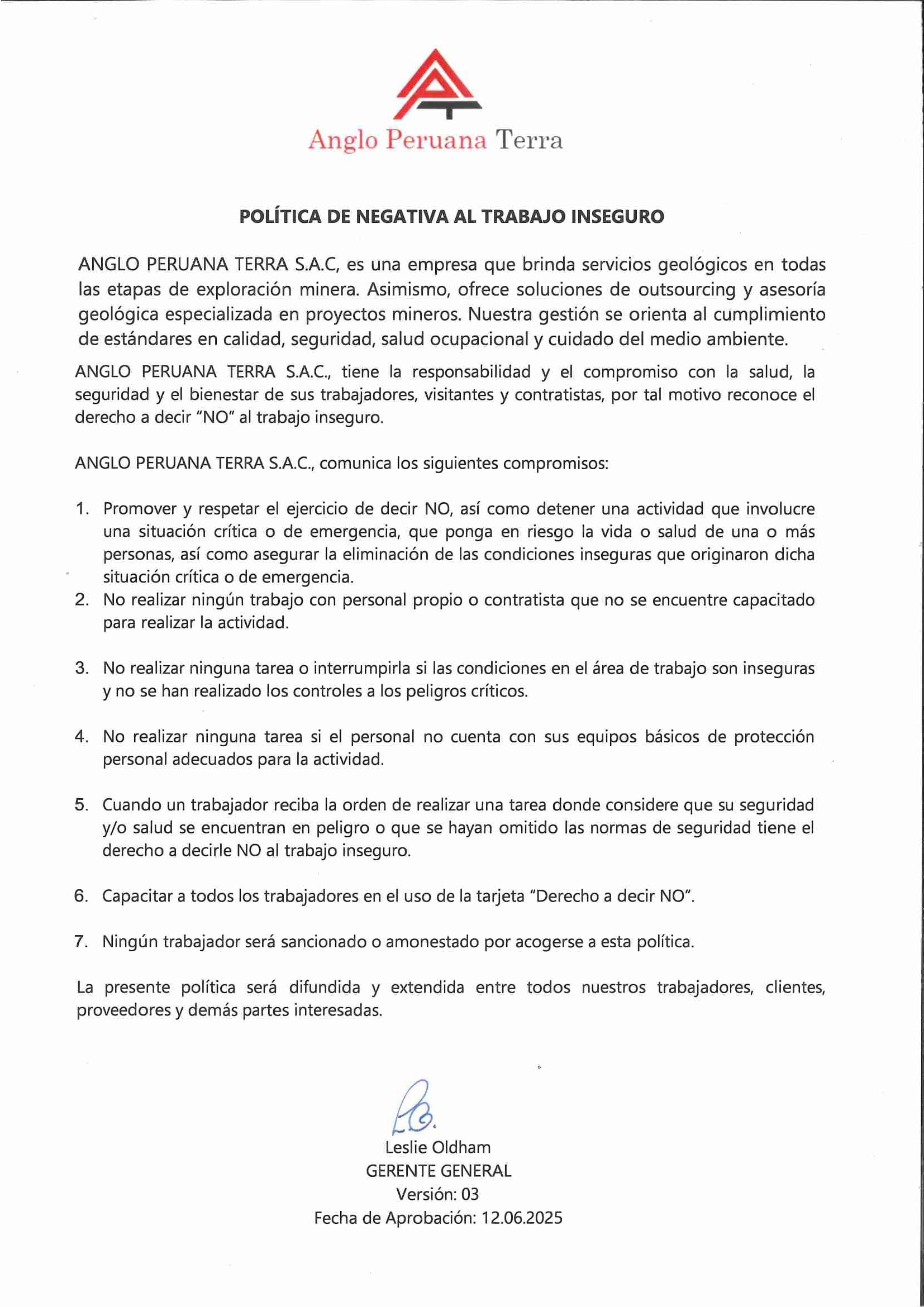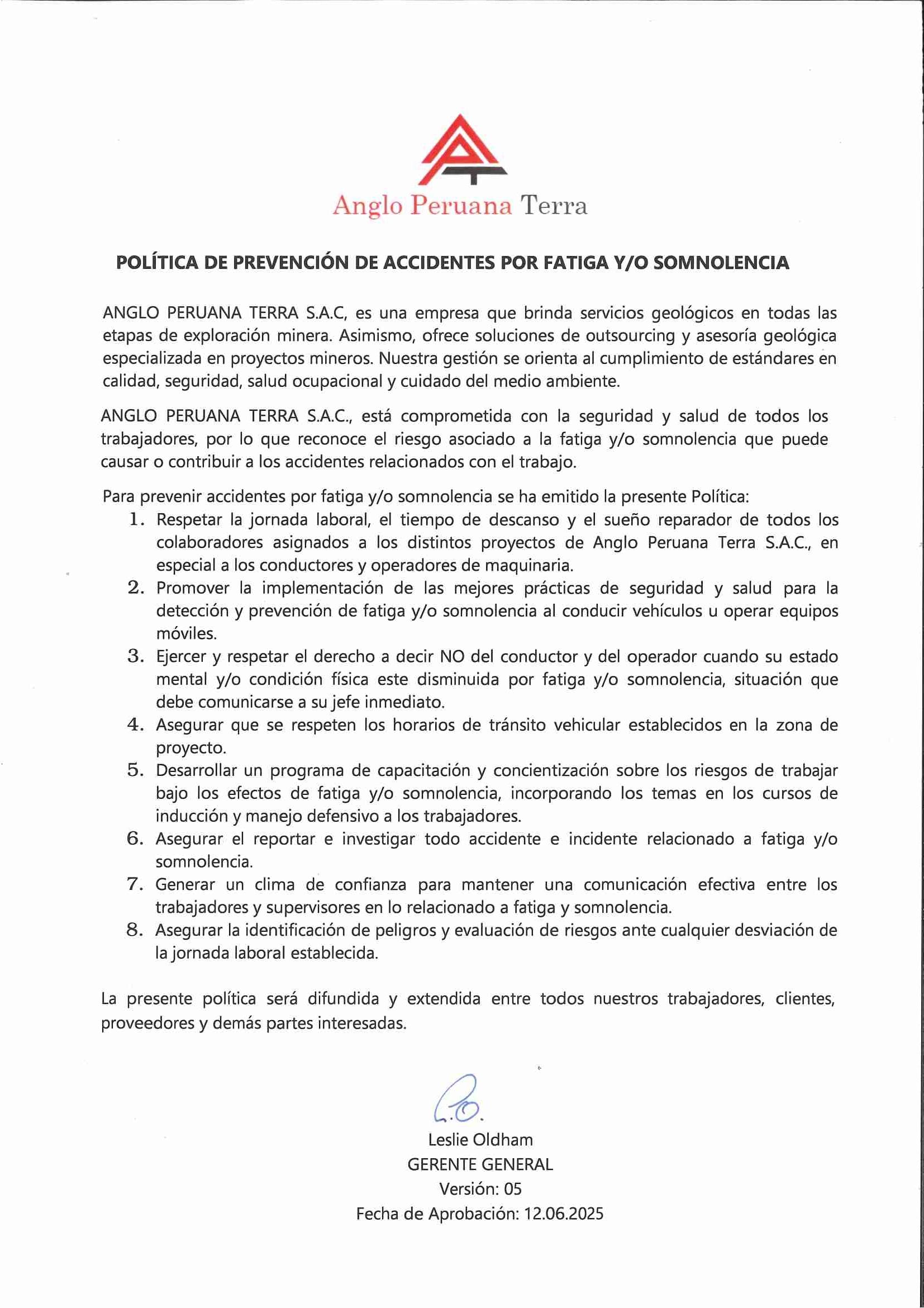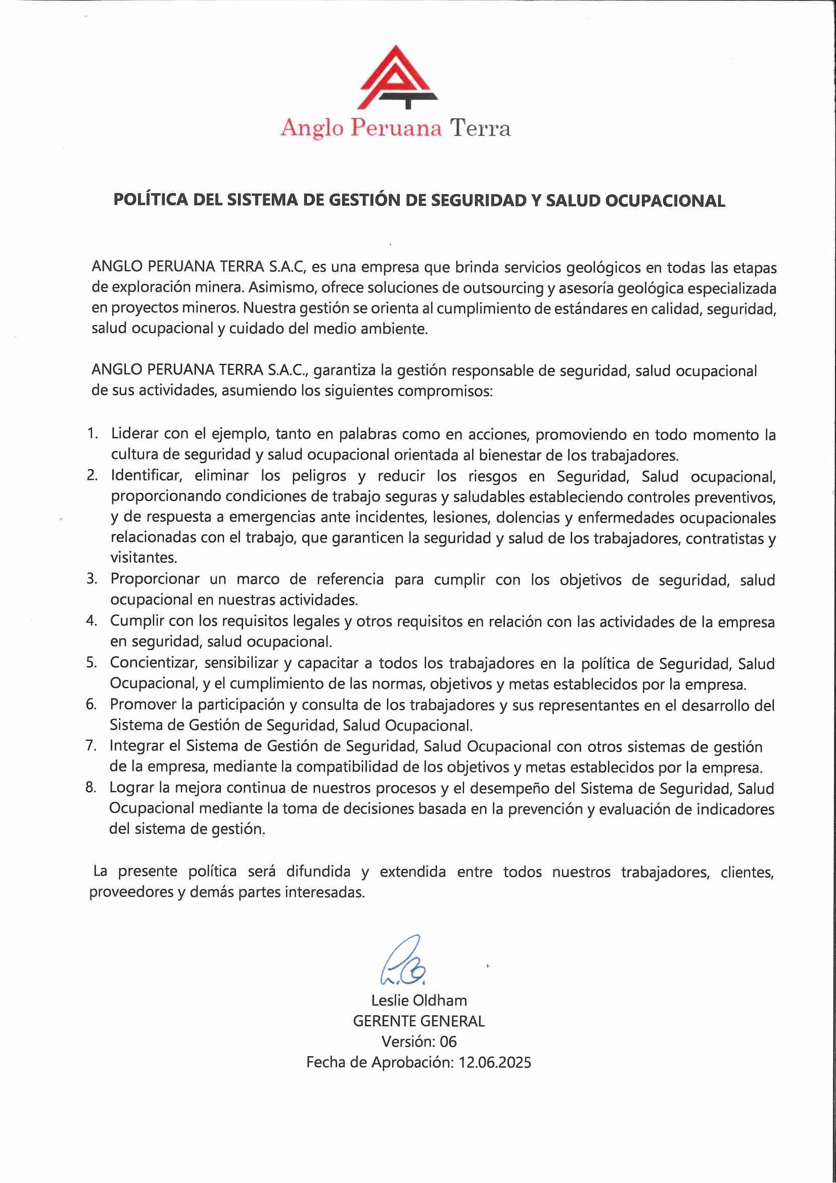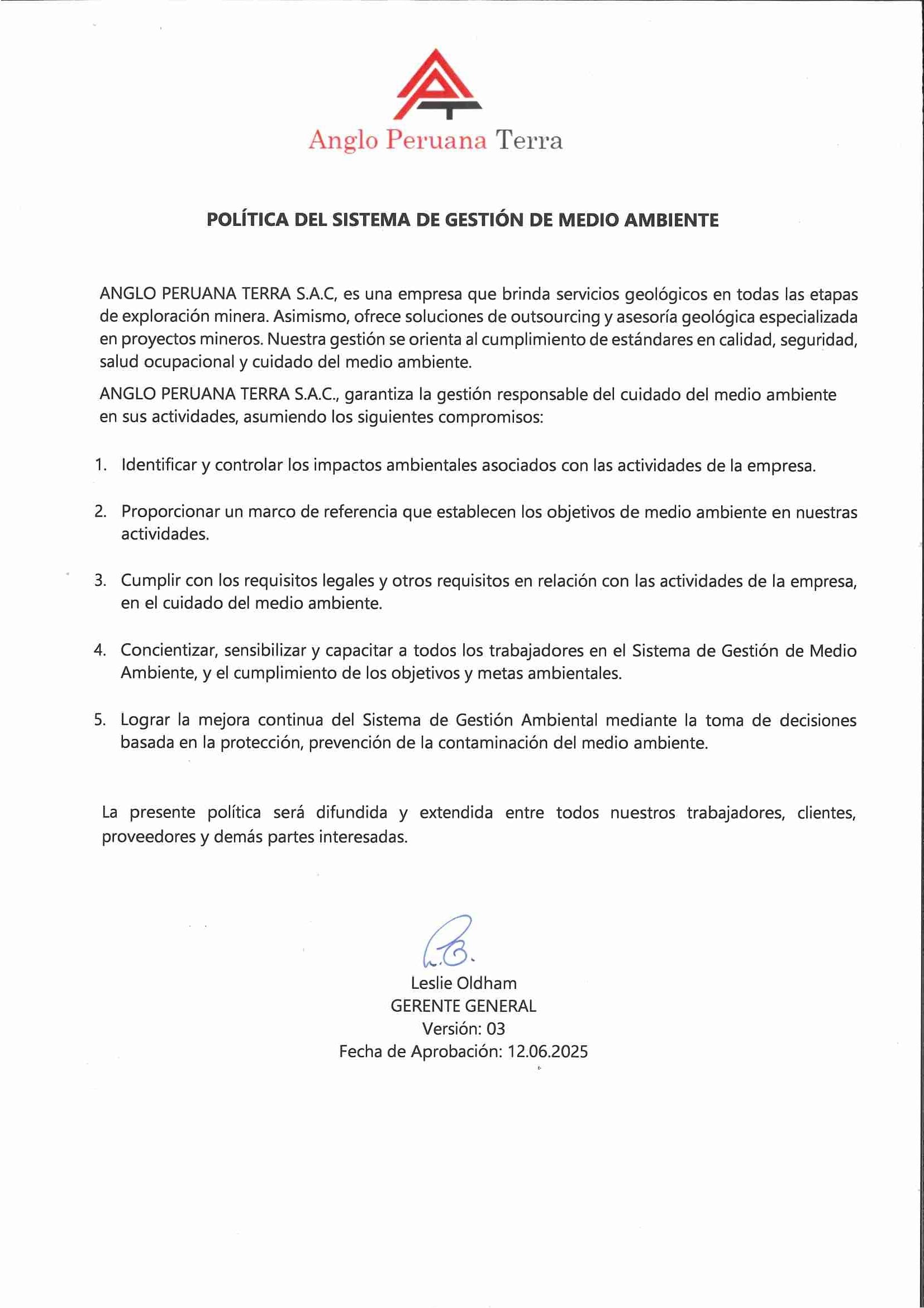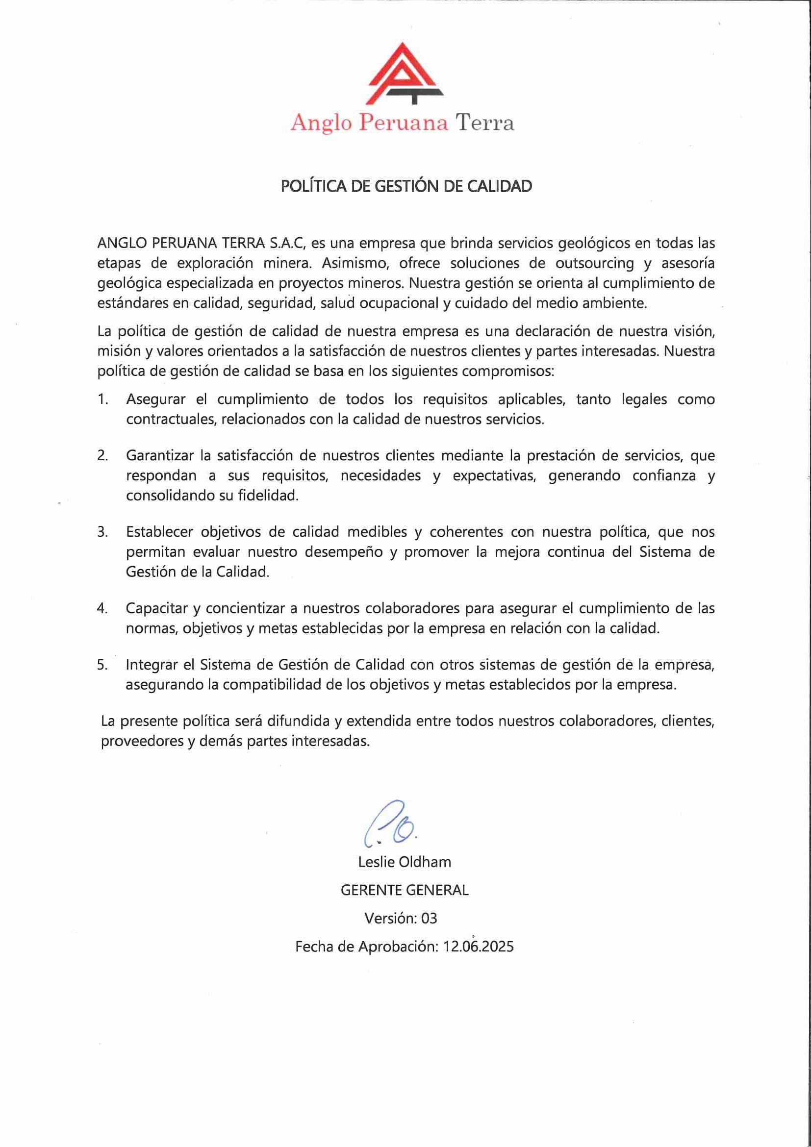 En el año 2025 Anglo Peruana Terra S.A.C., logra un gran hito en su historia al obtener la certificación ISO 9001:2015 e ISO 45001:2018