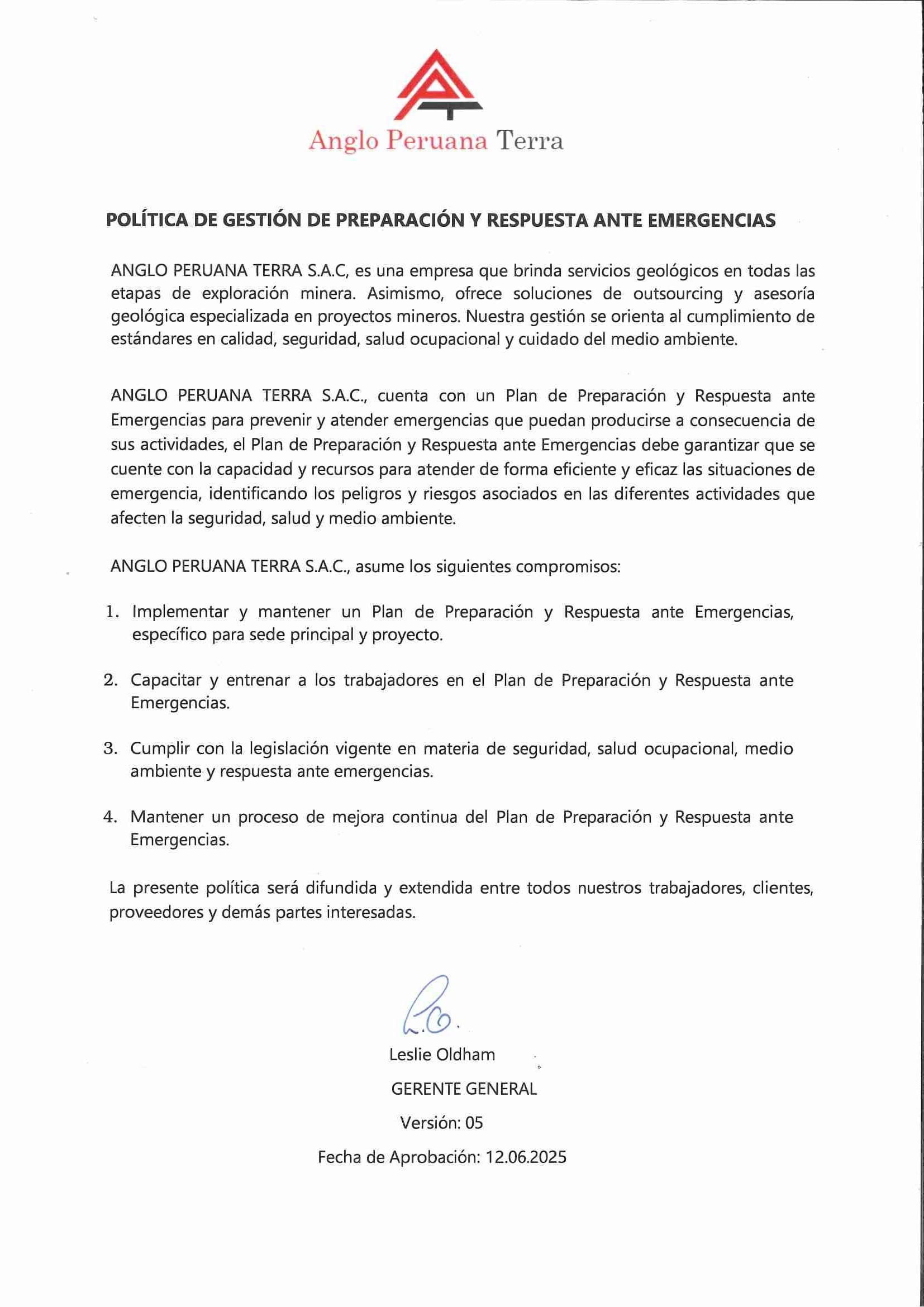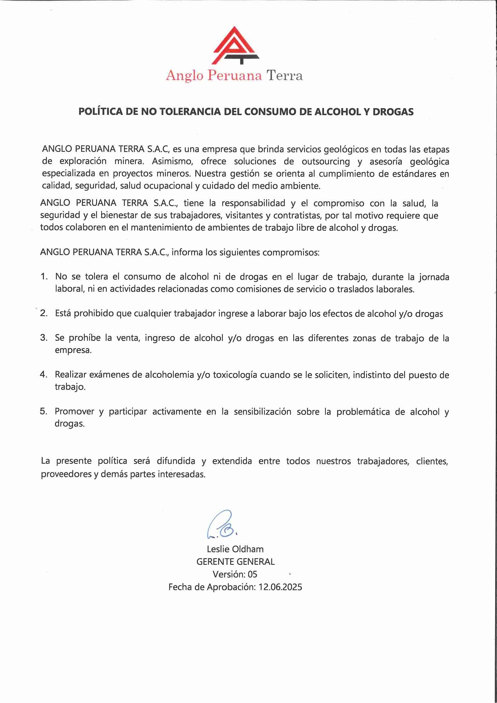 Actualmente, Anglo Peruana Terra S.A.C. cuenta con un amplia experiencia administrando, apoyando y contribuyendo a las exploraciones en el Perú.
